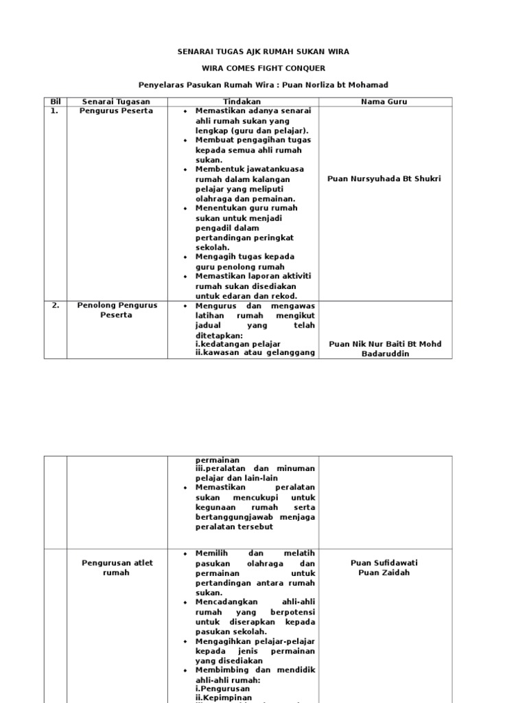 Senarai Tugas Ajk Rumah Sukan Wira Pdf